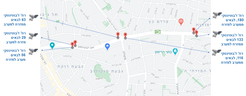 האכיפה מתבצעת באמצעות מצלמות נייחות הממוקמות ברחוב ז'בוטינסקי ובן גוריון להלן מיקומי המצלמות: